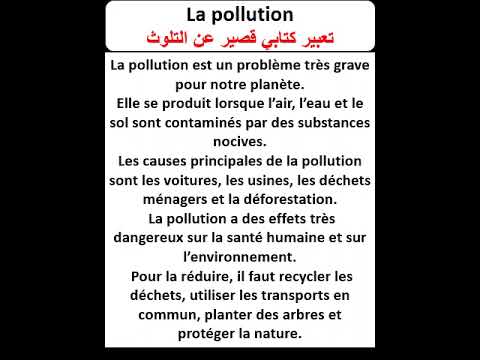 تعبير كتابي عن التلوث " La pollution " في اللغة الفرنسية للسنة الرابعة متوسط